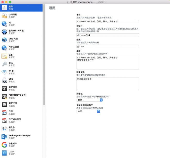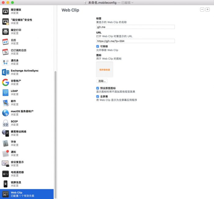 使用 Apple Configurator 2 创建 Web Clip 描述文件